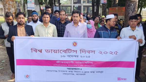 মোরেলগঞ্জে বিশ্ব ডায়াবেটিস দিবস র্যালি ও আলোচনা সভা