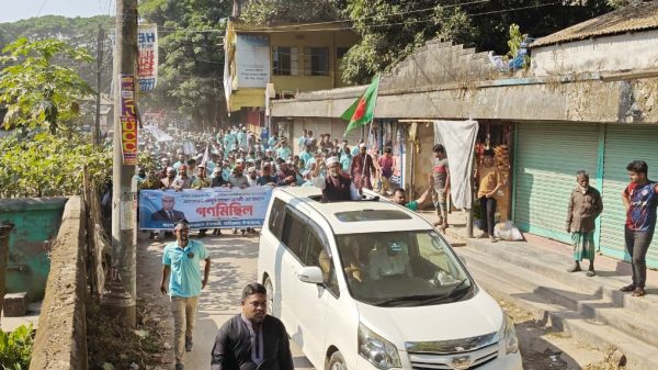 বানিয়াচংয়ে বিএনপি প্রার্থী ডাঃ জীবনের সমর্থনে বিএনপি’র গণ মিছিল