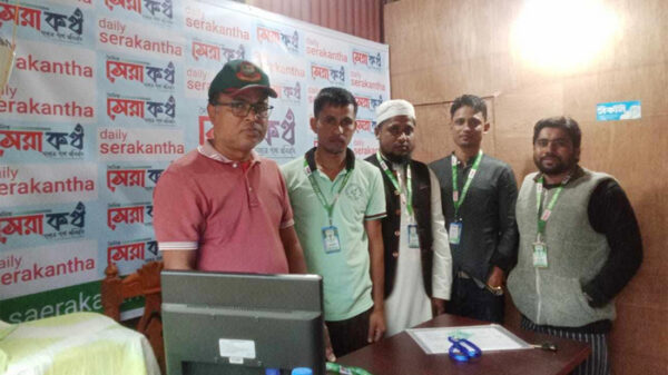 প্রতিনিধিদের মাঝে সেরাকণ্ঠ পত্রিকার কার্ড বিবতরণ