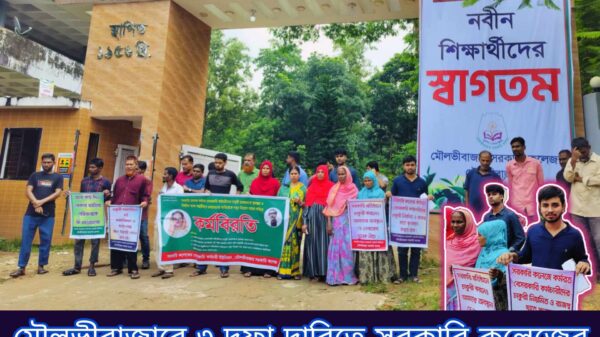 মৌলভীবাজারে ৩ দফা দাবিতে সরকারি কলেজের বেসরকারি কর্মচারীদের কর্মবিরতি পালন