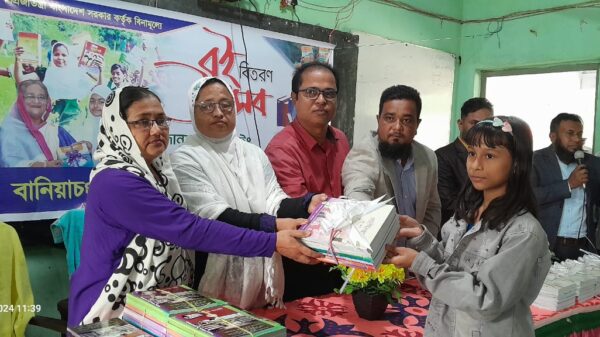 বানিয়াচং আদর্শ উচ্চ বিদ্যালয়ের শিক্ষার্থীদের মাঝে নতুন বই বিতরণ